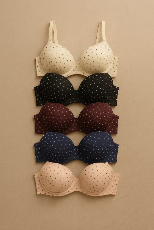 Add Charm to your everyday comfort with our Premium Printed Double Padded Bra – the perfect mix of style, support, and softness. Made with breathable cotton-blend fabric and playful micro prints, this bra is specially designed for women who want reliable coverage with fun look.